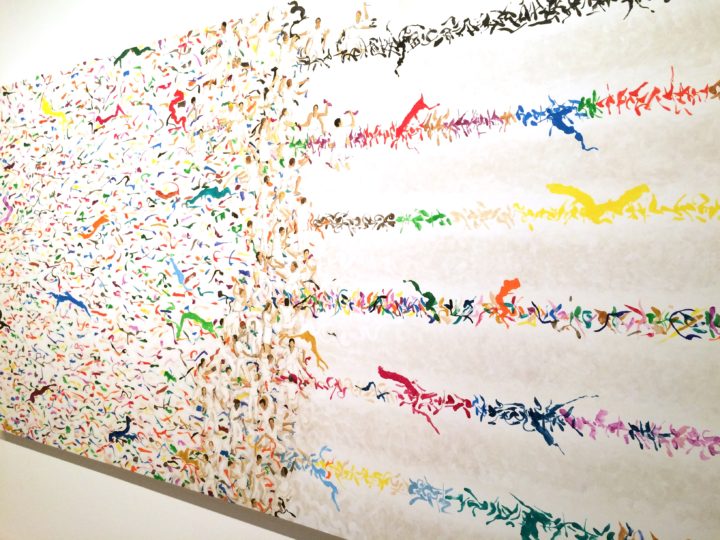 上の絵は、「大好きな迷路」。普段楽しんでいる迷路を自分なりに表現。色の使い方、クレヨン、マーカーの使い分けが私のお気に入りです。(描写時3歳半)