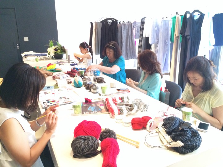 参加者各自が自由に好きなアイテムを作れるニットサロン。レディースのお洋服からファンション雑貨、バック、メンズアイテム、キッズアイテム、インテリアグッズ等お好きなものをご自由にお作り頂けます。