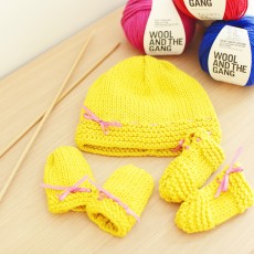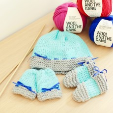 ベビーニットキャップ、ミトン、ソックスを作るワークショップ。初心者の方大歓迎。コットン100%の糸で...