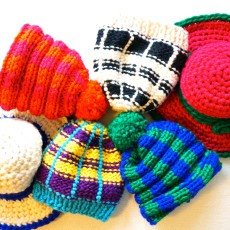 ベビーニットキャップ、ミトン、ソックスを作るワークショップ。初心者の方も大歓迎。コットン100%の糸...